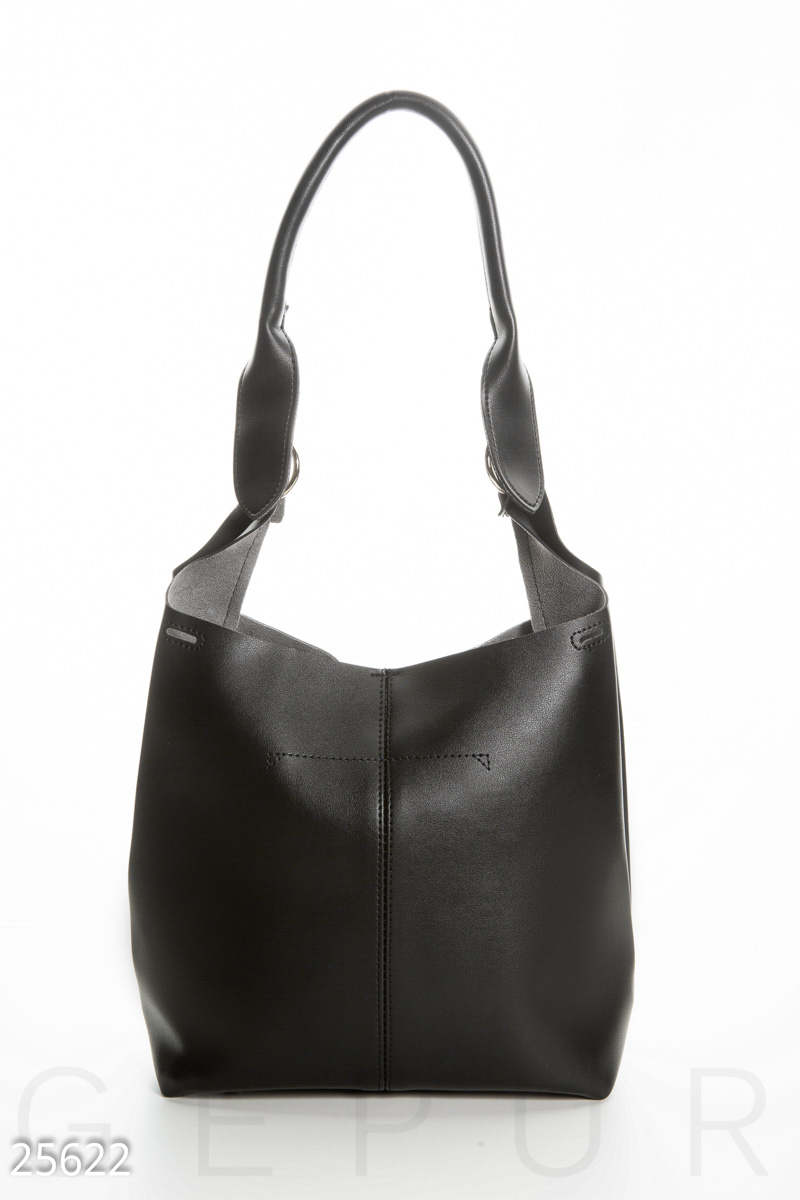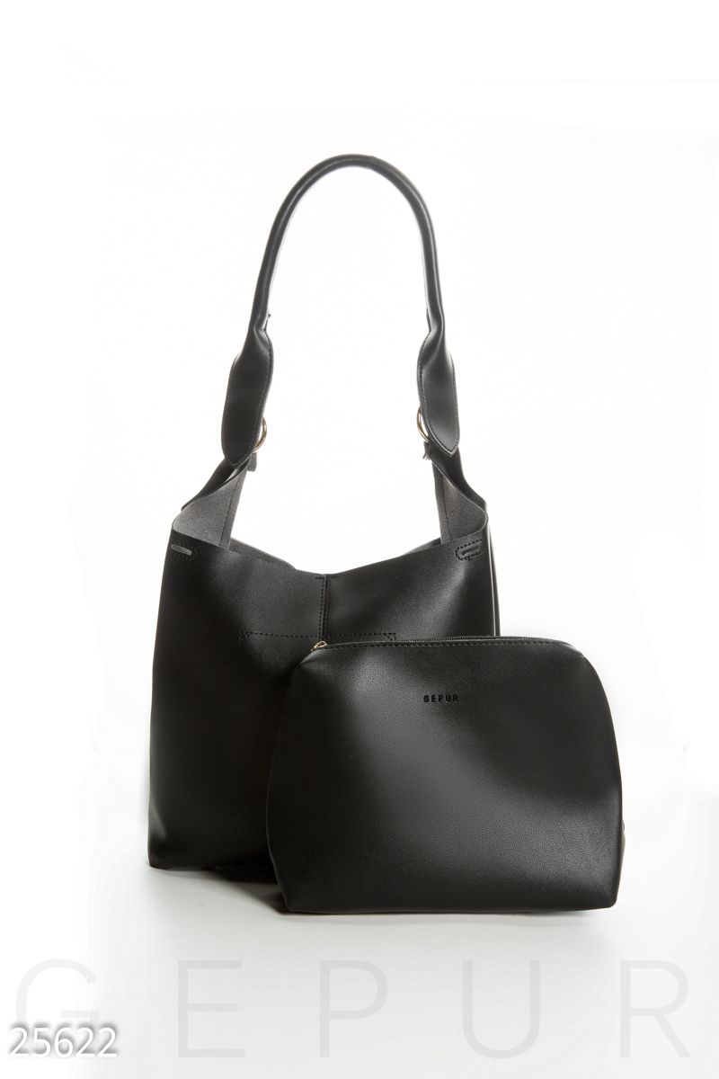 Оригінальна сумка-тоут з додатковим клатчем на блискавці, короткою ручкою і знімним плечовим ремінцем-кіскою.
